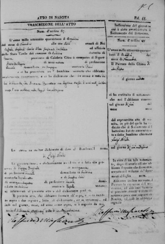 Francesco Antonio Nicola Maria Connataro was born in 1781 in Mendicino, Cosenza, Calabria, Italy. He and