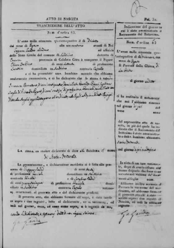 Maria Fortunata De Cesare (De Cesaro) was born on August 18, 1844 in Mendicino, Cosenza, Calabria, Italy. She died on August 27, 1844, at age 0, in Mendicino, Cosenza, Calabria, Italy.