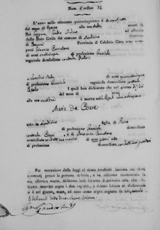 Pietro Saverio De Cesare (De Cesaro) were married on March 18, 1841 in Mendicino, Cosenza, Calabria, Italy. She died in Italy.