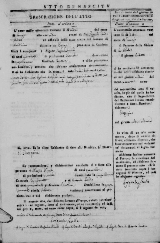 Teresa Iantorno were married. He died on April 29, 1843, at age ~69, in Mendicino, Cosenza, Calabria, Italy.
