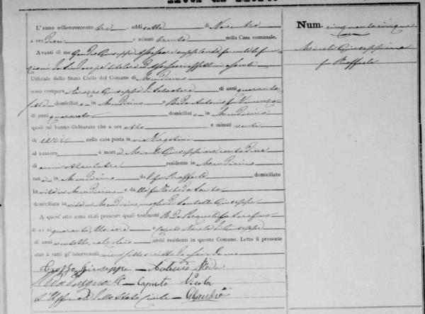 Giuseppina Micieli were married on August 29, 1845 in Mendicino, Cosenza, Calabria, Italy. He died on March 16, 1855, at age 39, in Mendicino, Cosenza, Calabria, Italy.