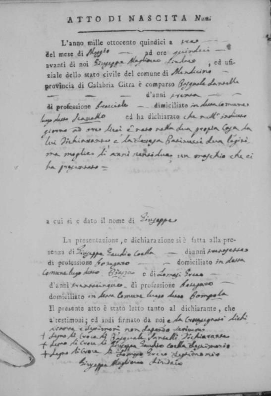 Pasquale Santelli was born in 1785 in Mendicino, Cosenza, Calabria, Italy. He and