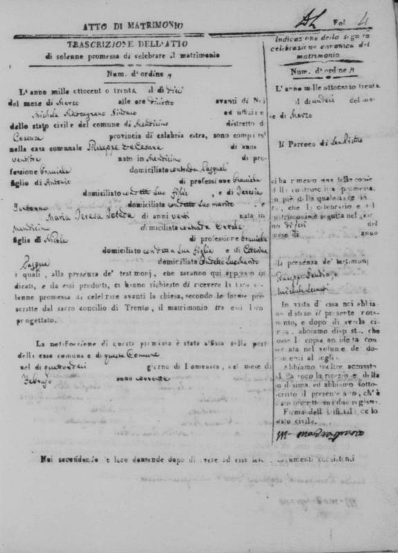 Maria Rosaria Nardi were married on December 1, 1824 in Mendicino, Cosenza, Calabria, Italy. He and