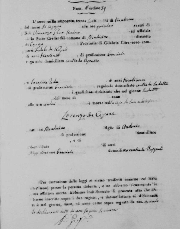 Lorenzo De Cesare (De Cesaro) was born in 1805 in Mendicino, Cosenza, Calabria, Italy. He and