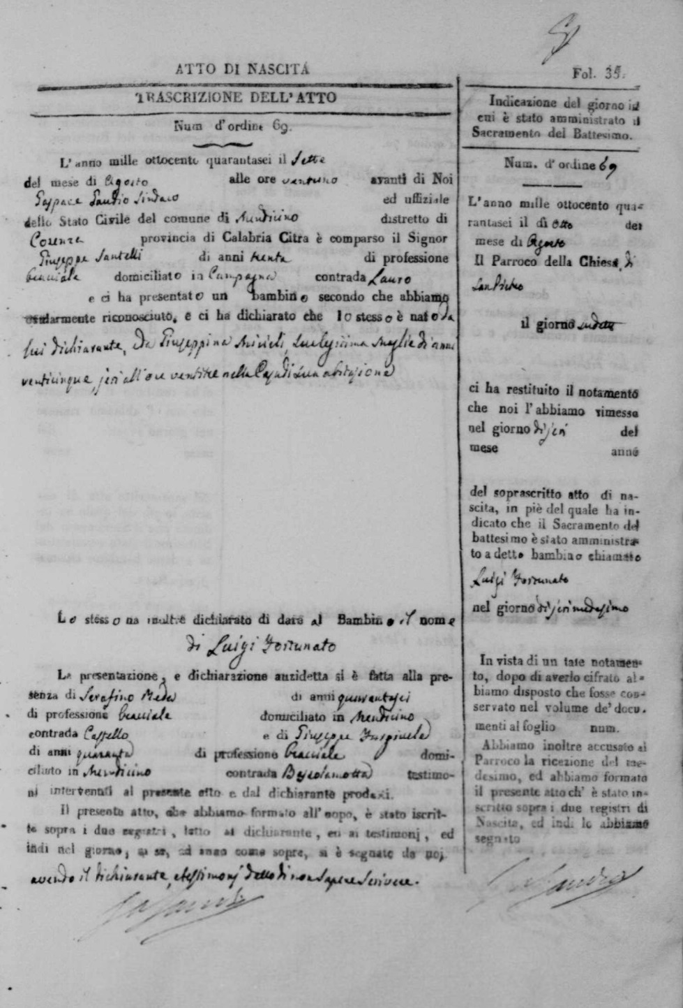 Luigi Fortunato Santelli was born on August 7, 1846 in Mendicino, Cosenza, Calabria, Italy. He died on August 25, 1908, at age 62, in Mendicino, Cosenza, Calabria, Italy.