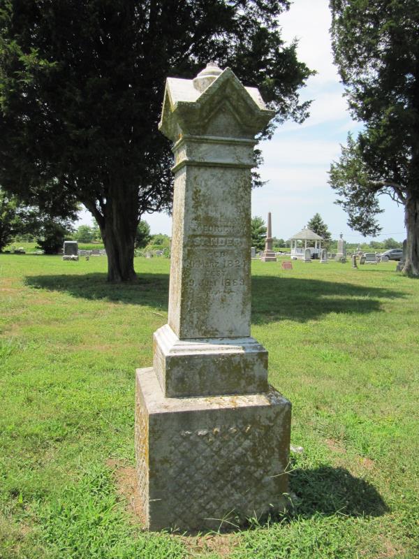 Frederick William Sander were married. She died on November 14, 1890, at age 62, in Madison, Illinois, USA. She was buried in Saint James Cemetery, Edwardsville, Illinois.
