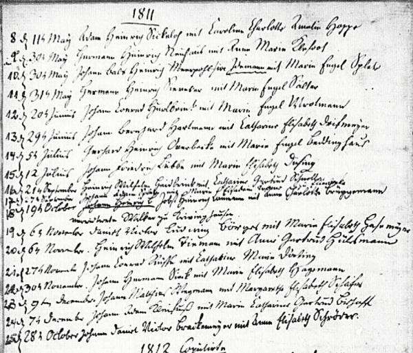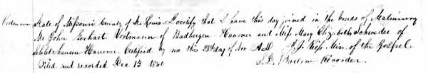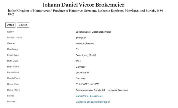 Johann Daniel Victor Brakemeier were married on October 28, 1811 in Schledehausen, Osnabruck, Lower Saxony, Germany. She died.
