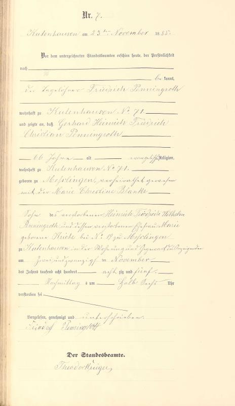 Gerhard Heinrich Friedrich Christian Penningroth was born on December 24, 1819 in Meslingen, Minden-Lubbecke, North Rhine-Westphalia, Germany. He and