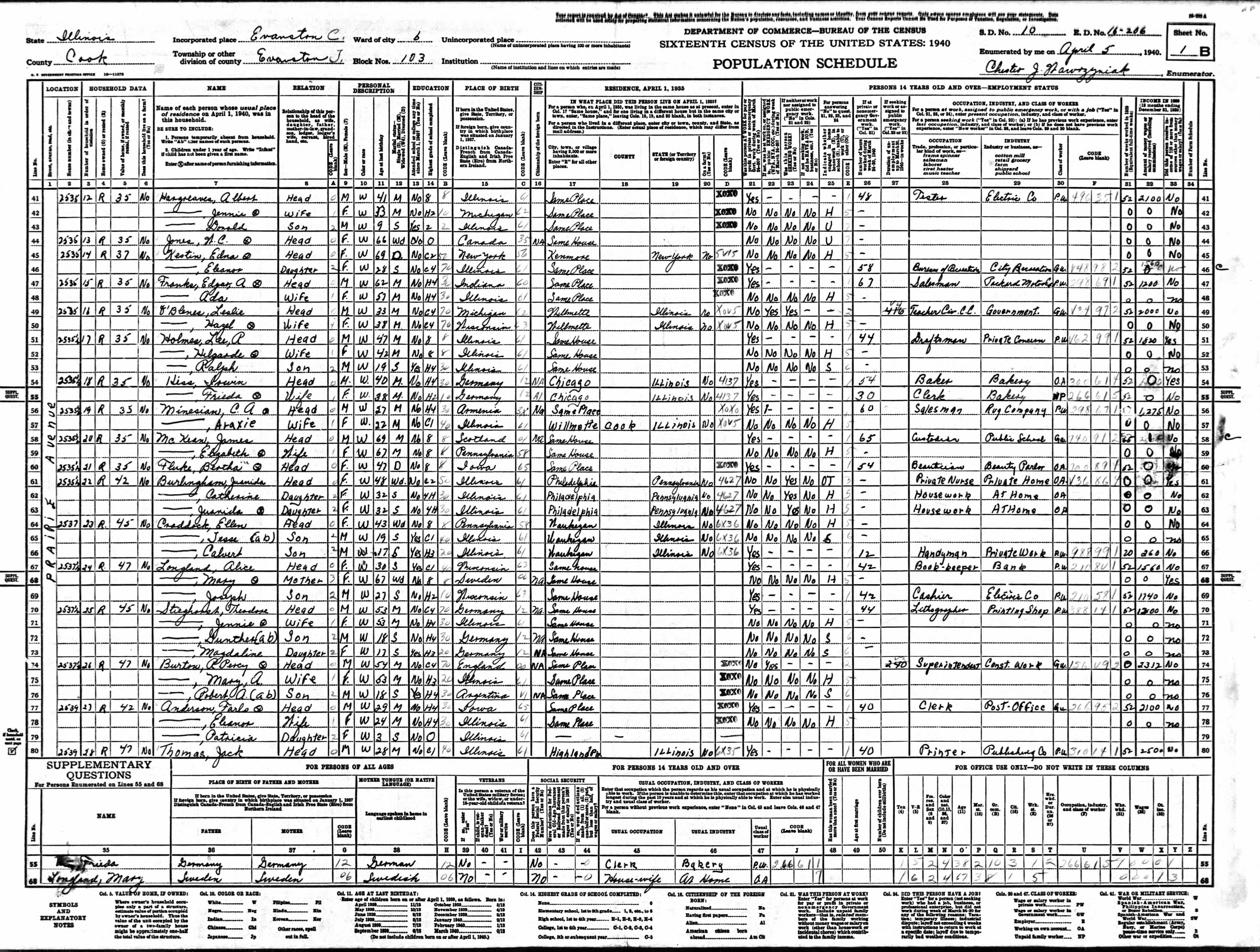 Klein Family 1940 Federal Census Illinois, Lines 71-72