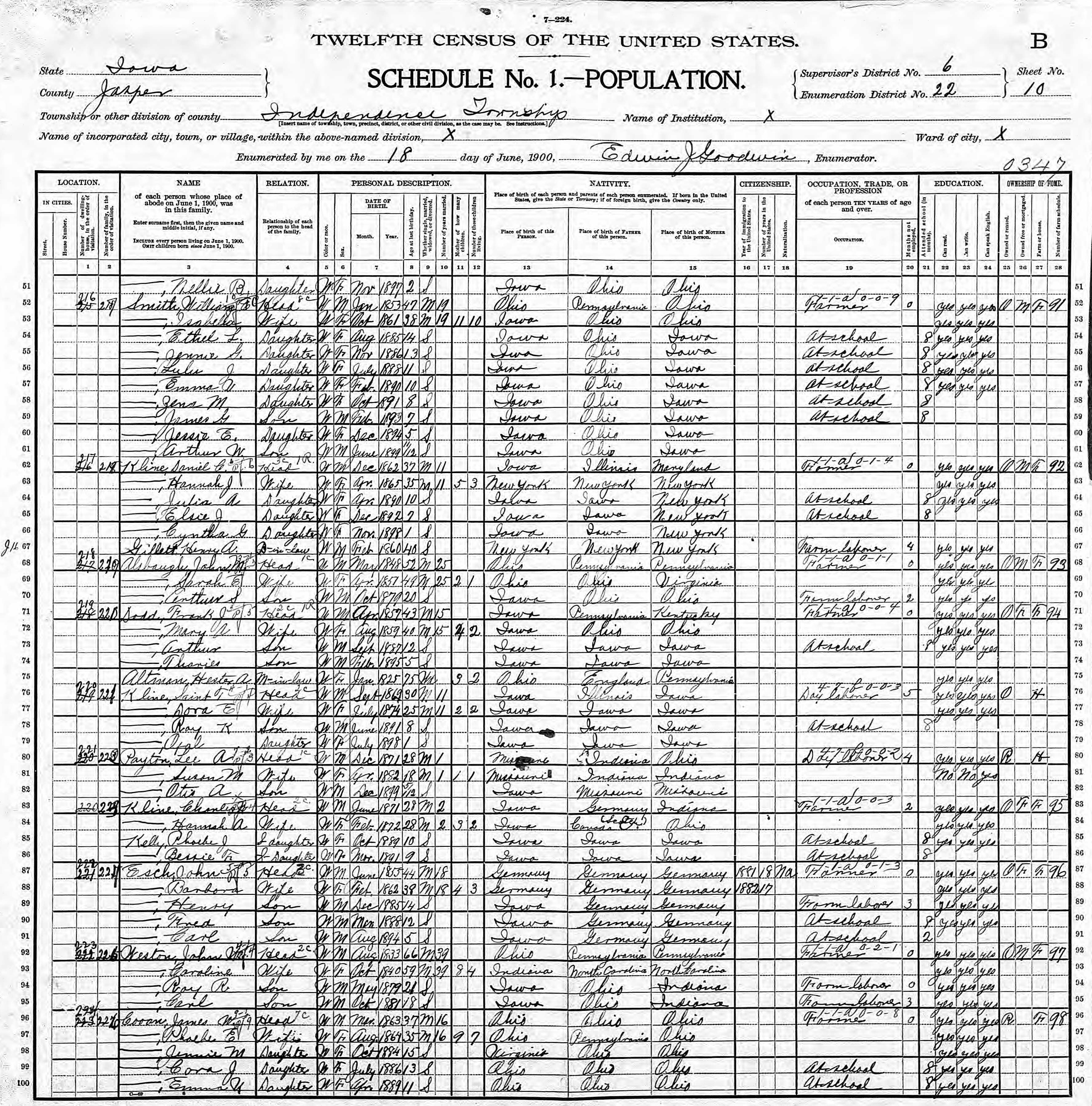 Klein Family 1900 Federal Census Iowa, Lines 42-48