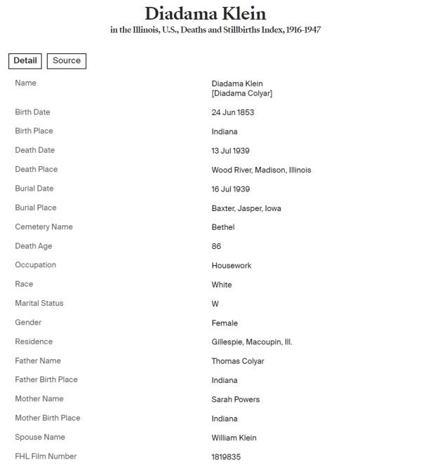 Diadama Colyer was born on June 24, 1853 in Leesburg, Kosciucko, Indiana, USA. She and