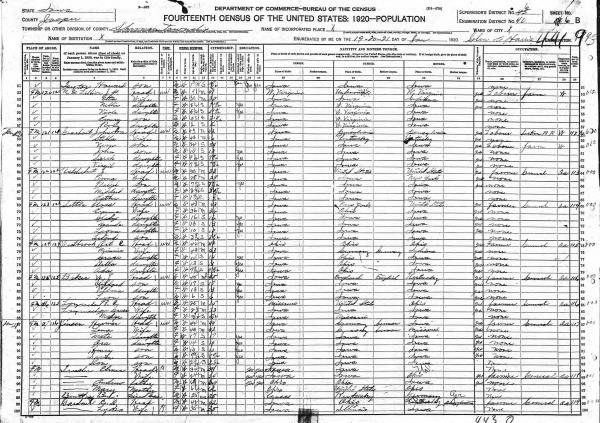 Westbrook Family 1920 Federal Census Iowa, Lines 75-79