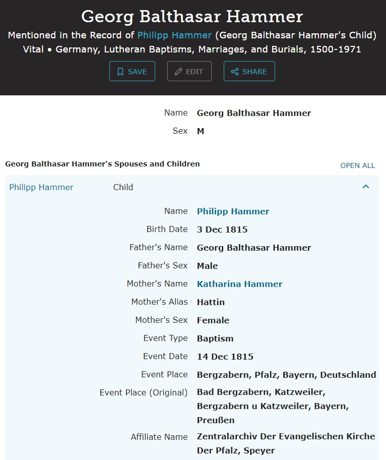 Heinrich Hammer was born in 1818 in Bad Bergzabern, Südliche Weinstraße, Rhineland-Palatinate, Germany. He and