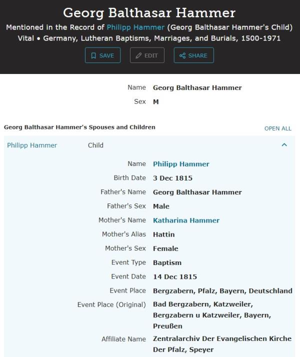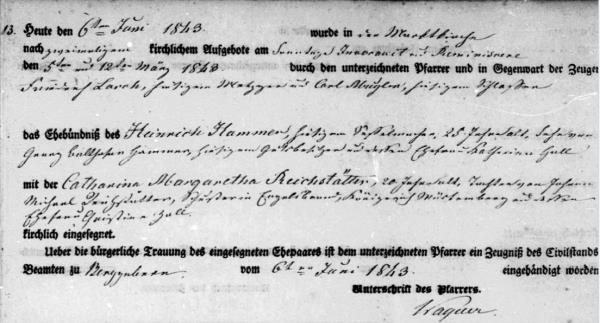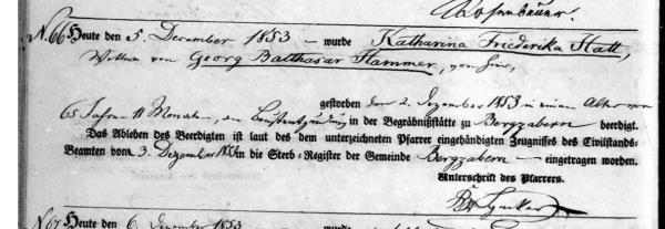 Heinrich Hammer were married on June 6, 1843 in Bad Bergzabern, Südliche Weinstraße, Rhineland-Palatinate, Germany. She died.