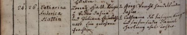 Catharina Friedericka Hatt was born on December 24, 1787 in Bad Bergzabern, Südliche Weinstraße, Rhineland-Palatinate, Germany. She and