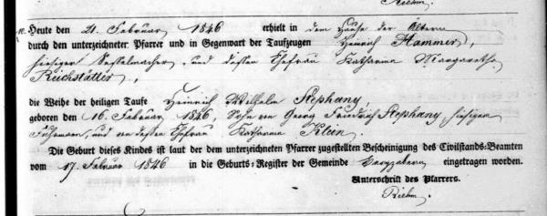 Heinrich Wilhelm Stephanÿ was born on February 16, 1846 in Bad Bergzabern, Südliche Weinstraße, Rhineland-Palatinate, Germany. He died on February 22, 1846, at age 0, in Bad Bergzabern, Südliche Weinstraße, Rhineland-Palatinate, Germany.