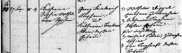 Johann Umchfelbach were married on March 25, 1822 in Bad Bergzabern, Südliche Weinstraße, Rhineland-Palatinate, Germany. She died.