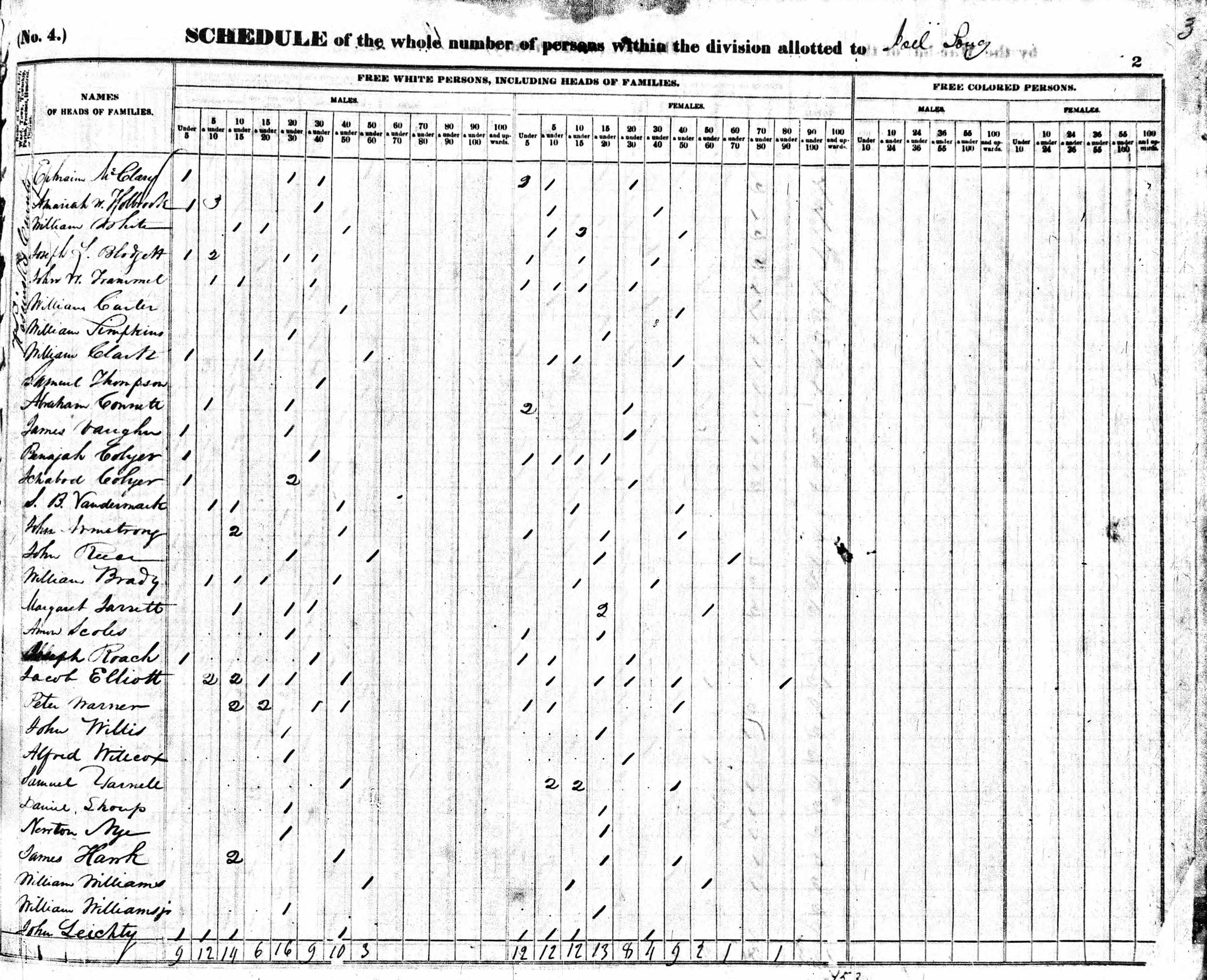Colyer Family 1840 Federal Census Indiana, Line 11-12
