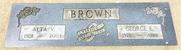 George E. Brown were married on September 4, 1946. She died in 2003, at age ~75. She was buried in Paris Memorial Gardens, Paris, Illinois.