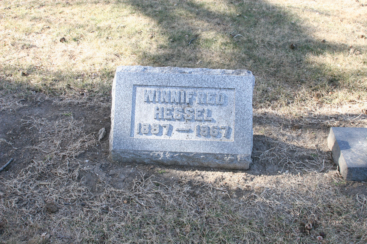 Bertram C. Hessel were married. She died on June 15, 1967, at age 69, in Arley, Clay, Missouri, USA. She was buried in Arley Cemetery, Kearney, Missouri.