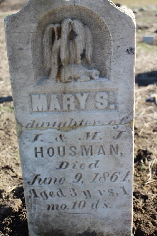 Mary S. Hausman was born on April 30, 1861 in Missouri, USA. She died on June 9, 1864, at age 3, in Missouri, USA. She was buried in Litts Cemetery, Whitecloud, Missouri.