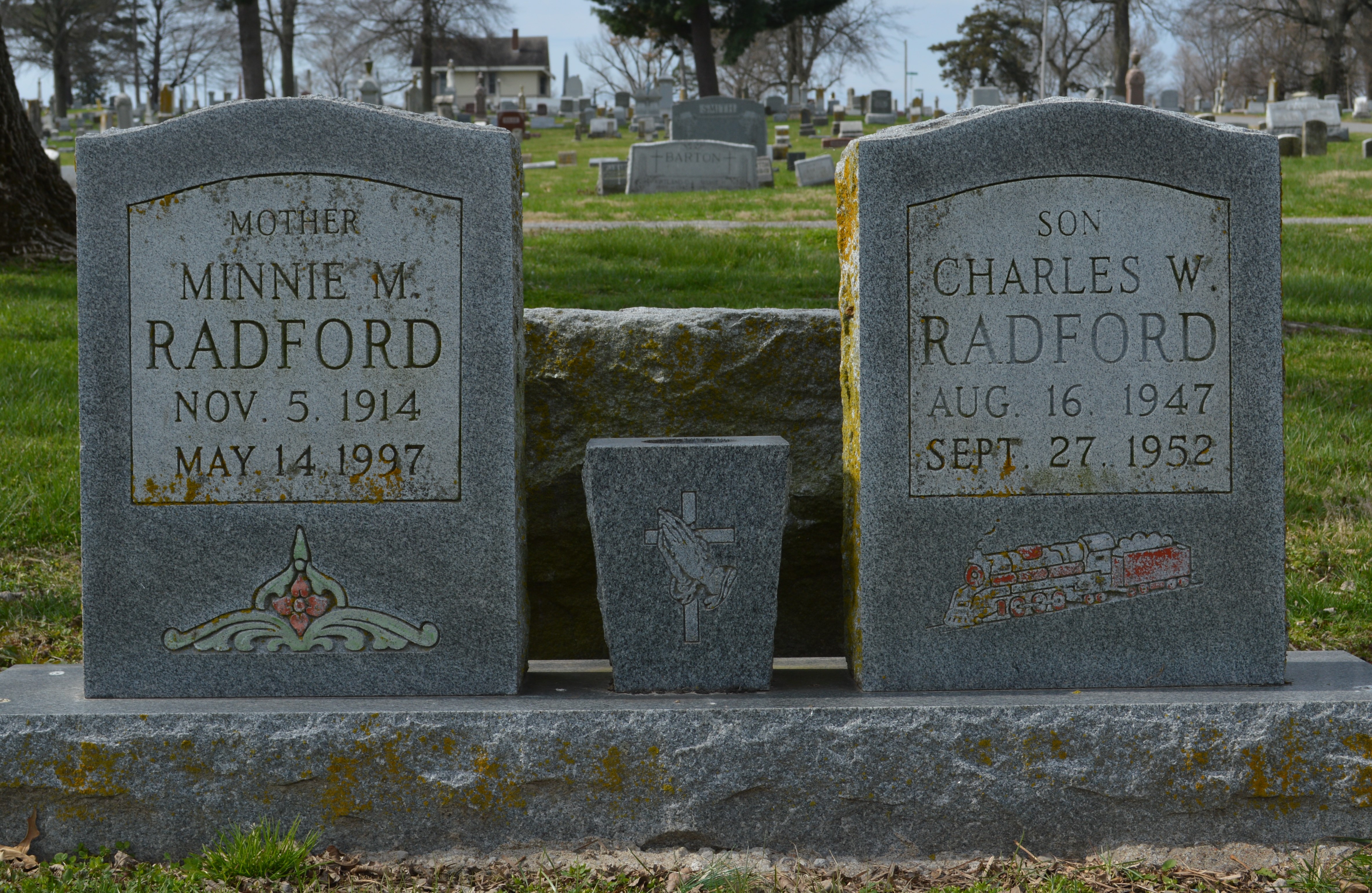 Charles Woodrow Radford, Sr., were married. She died on May 14, 1997, at age 82. She was buried in Walnut Hill Cemetery, Belleville, Illinois.