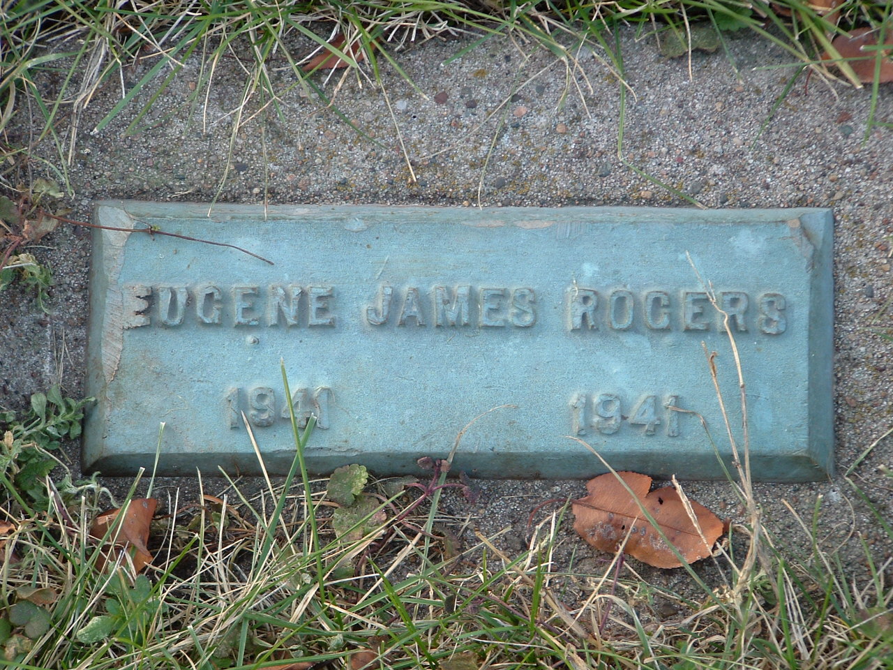 Eugene James Rogers was born on June 20, 1941 in Davenport, Scott, Iowa, USA. He died on June 20, 1941, at age 0, in Davenport, Scott, Iowa, USA. He was buried in Fairmount Cemetery, Davenport, Iowa.