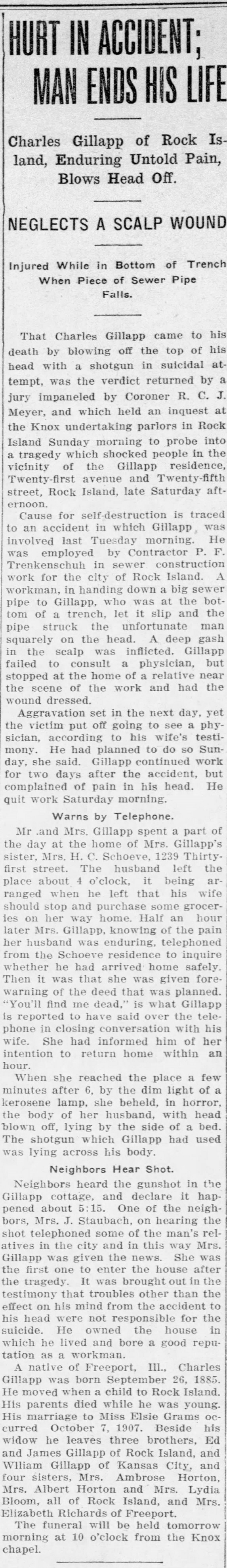 Charles Gillapp was born on September 26, 1885 in Freeport, Stephenson, Illinois, USA. He and