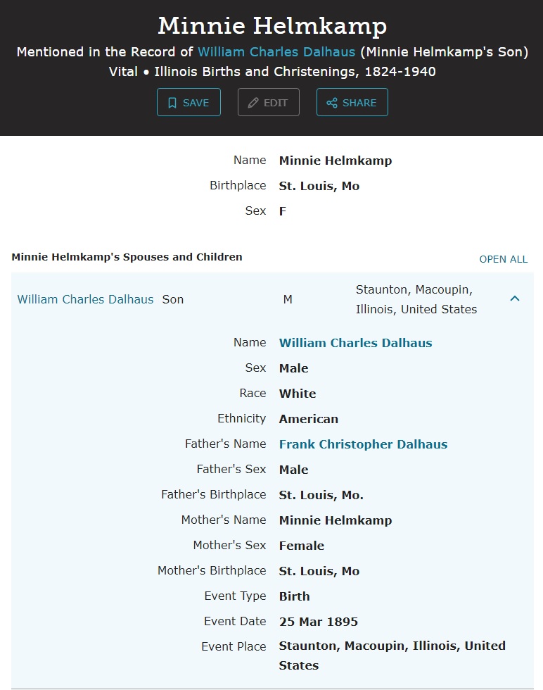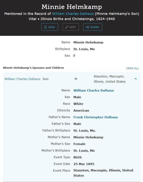 | Son | William Charles Dalhaus Born: March 25, 1895, Died: 1963 |