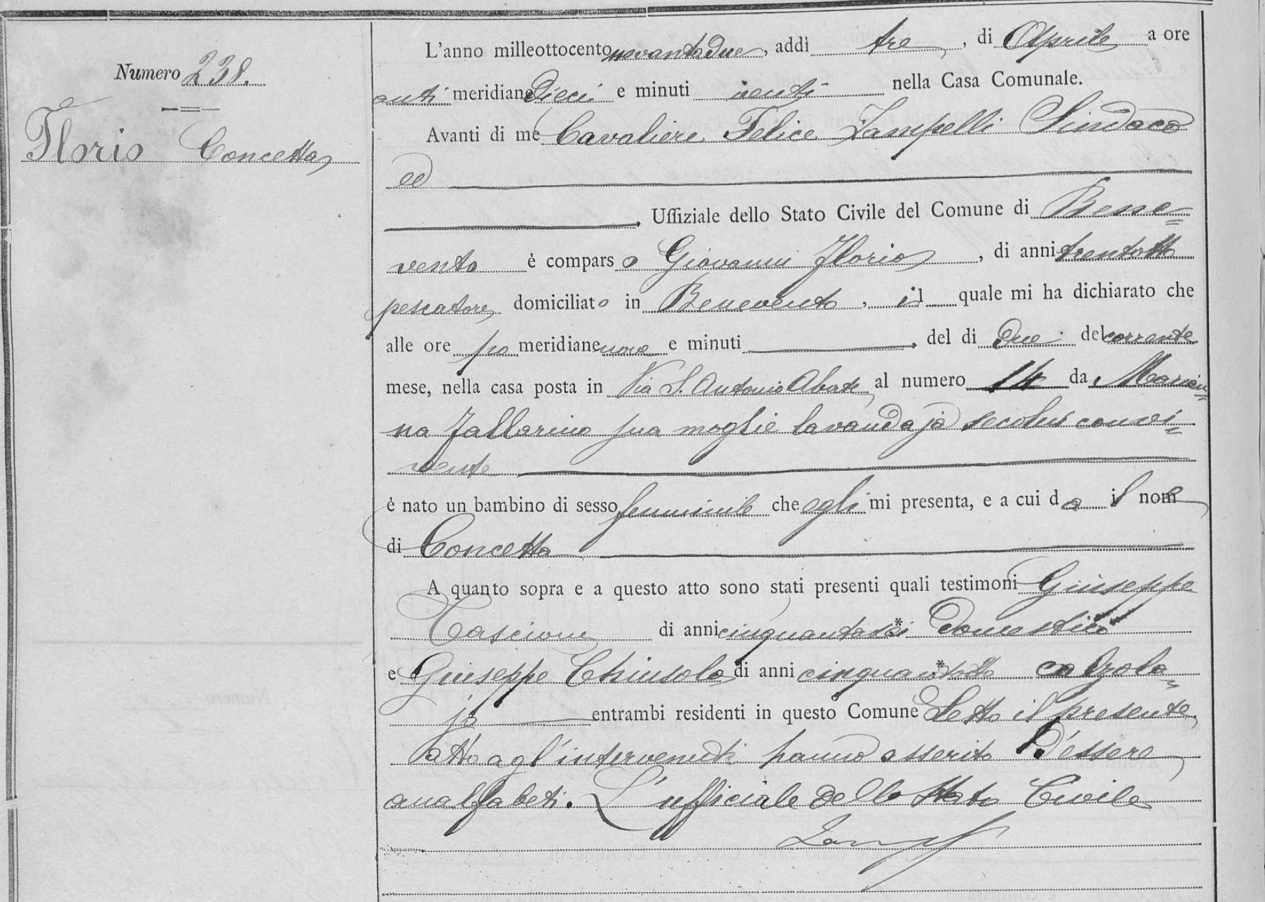 Concetta De Florio was born on April 2, 1892 in Benevento, Benevento, Campania, Italy. She died.