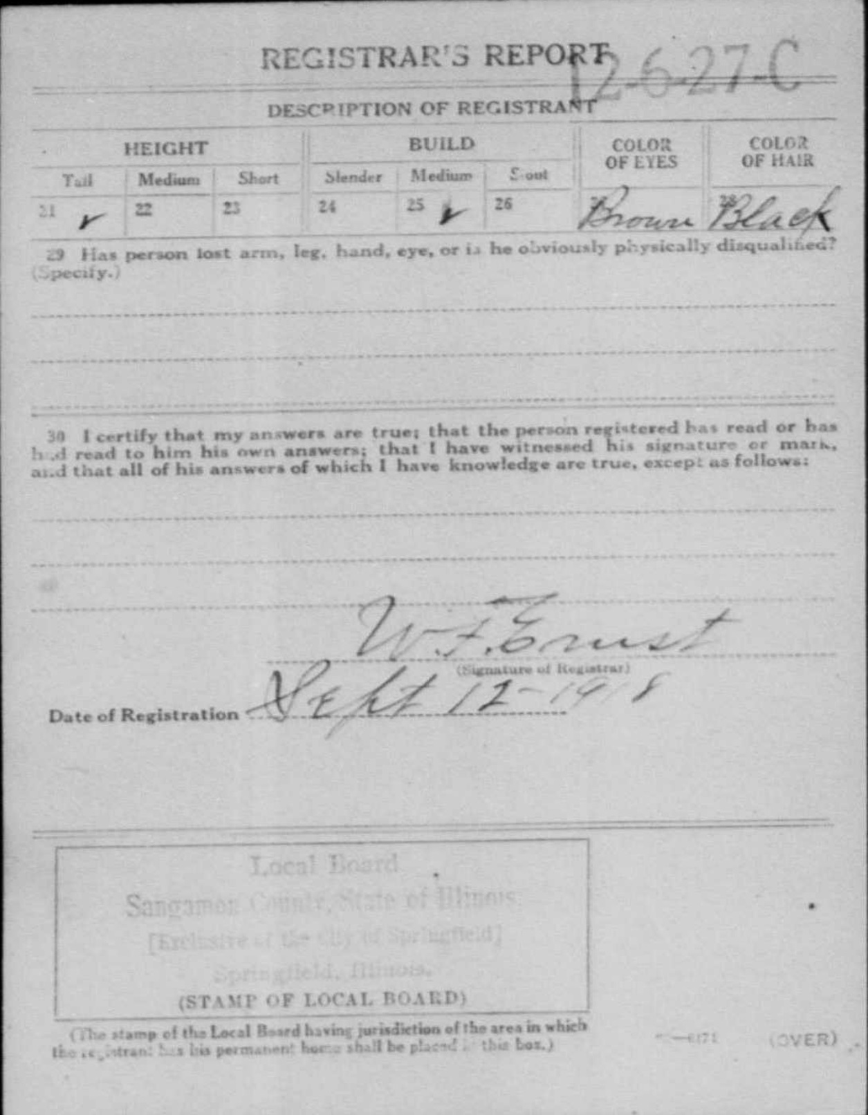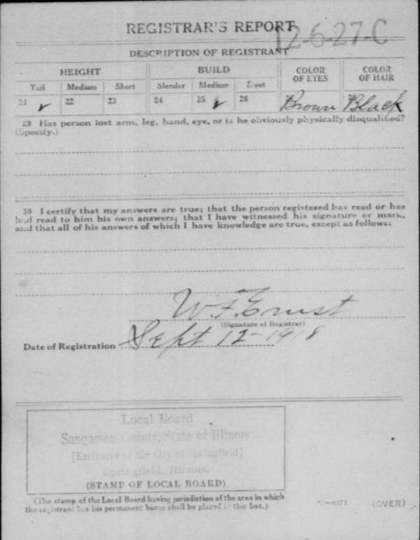 1918 World War I Registration Page 1