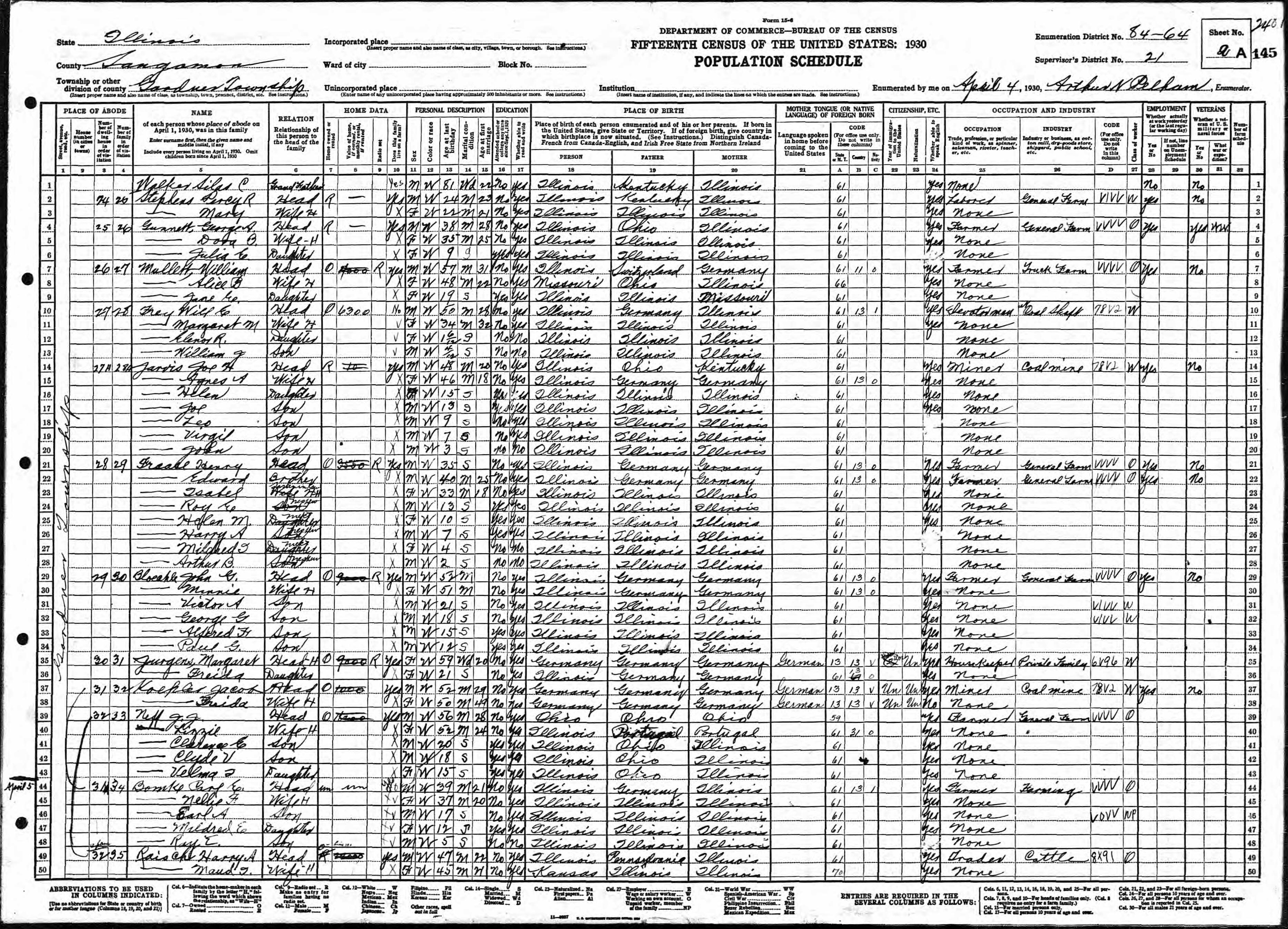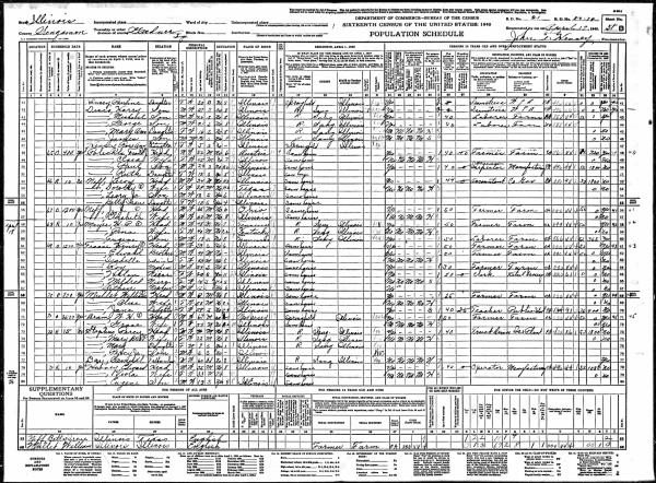 Fraase Family 1930 Federal Census, Illinois, Lines 21-28