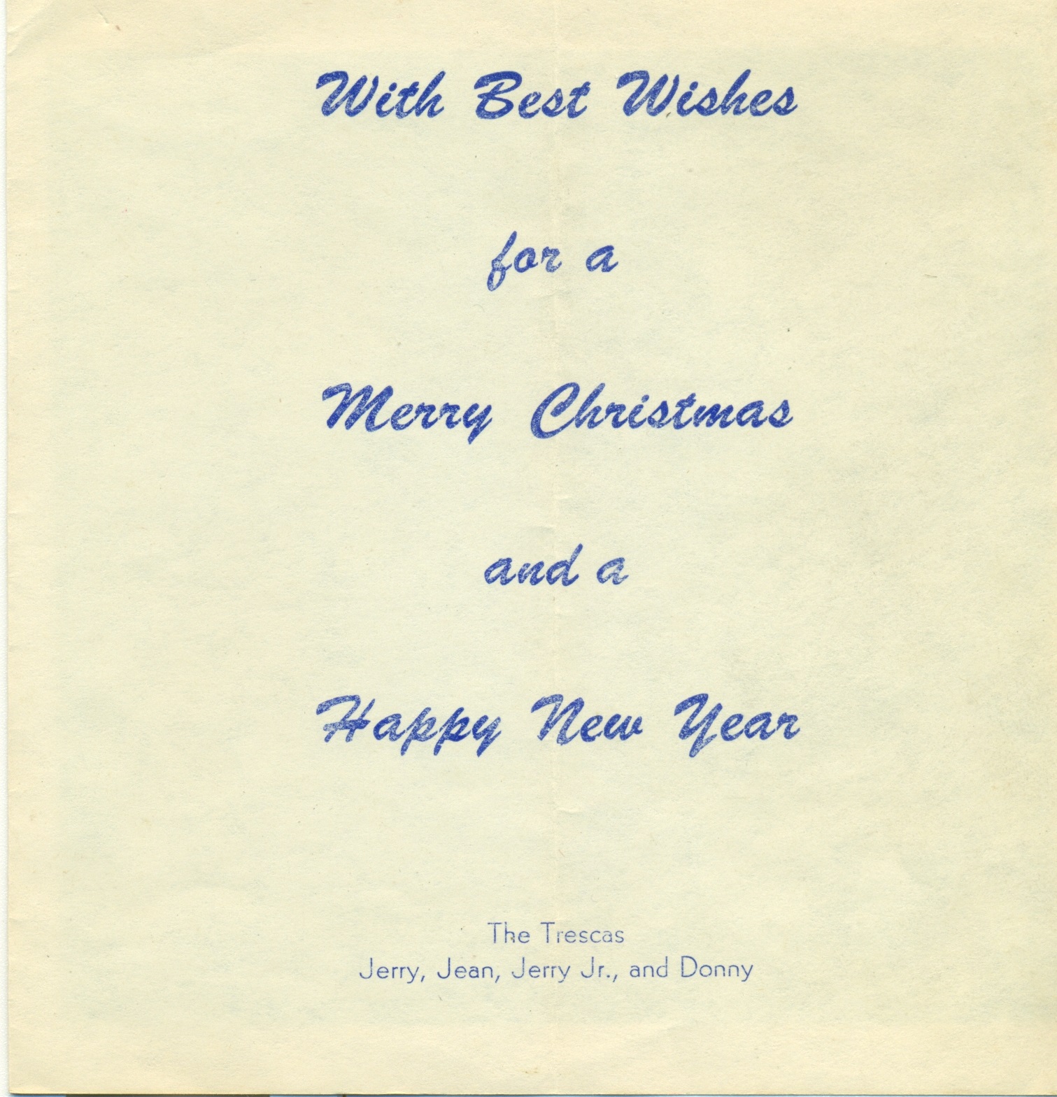 Jerry Jr. and Jerry Tresca, Jean Unknown., and Donny Tresca Christmas Card Front