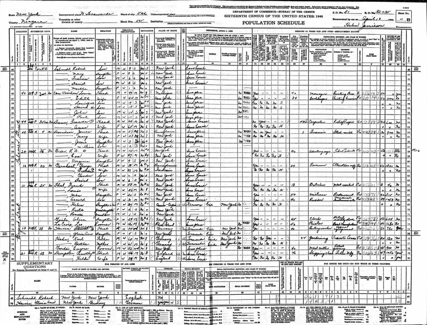 Davidson Family 1940 Federal Censys New York, Lines 54-57