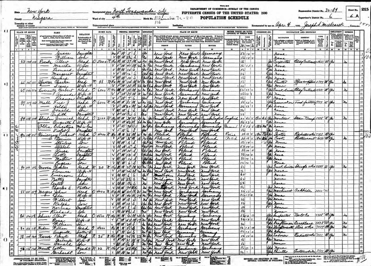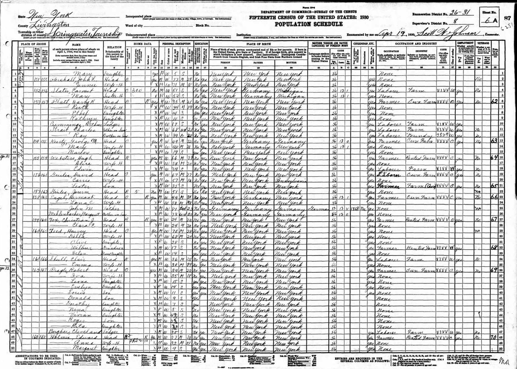 Teed Family 1930 Federal Census New York, Lines 29-33