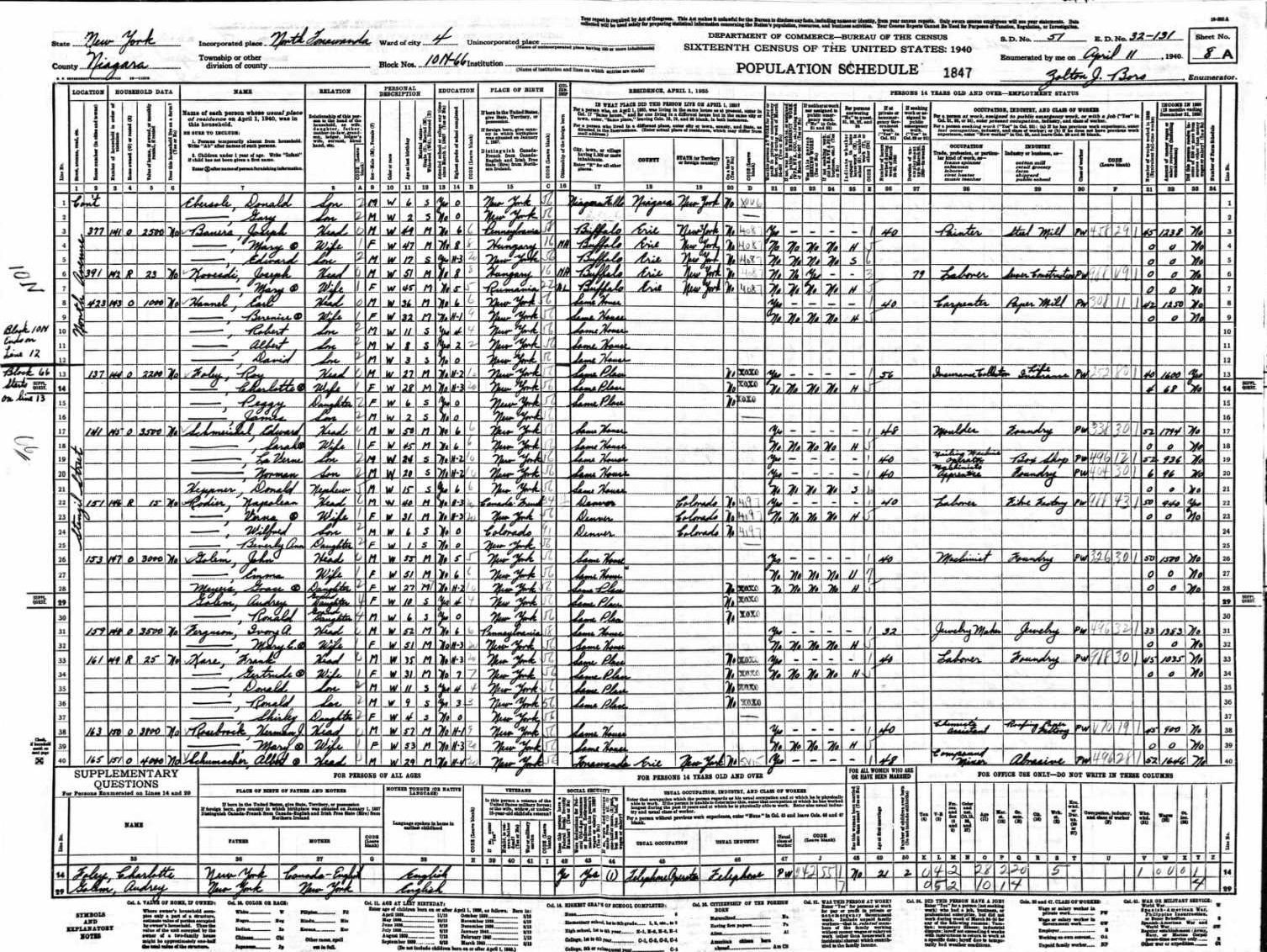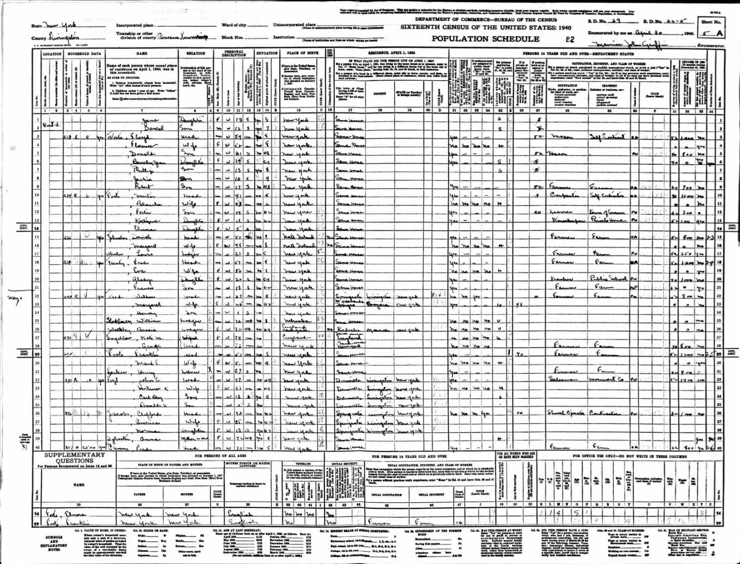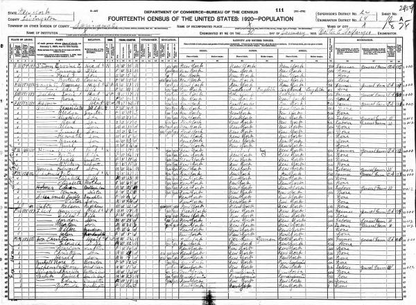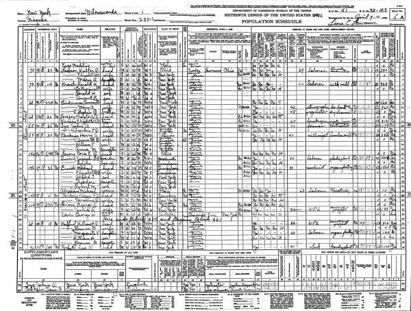 Lawson Family 1940 Federal Census New York, Lines 2-4