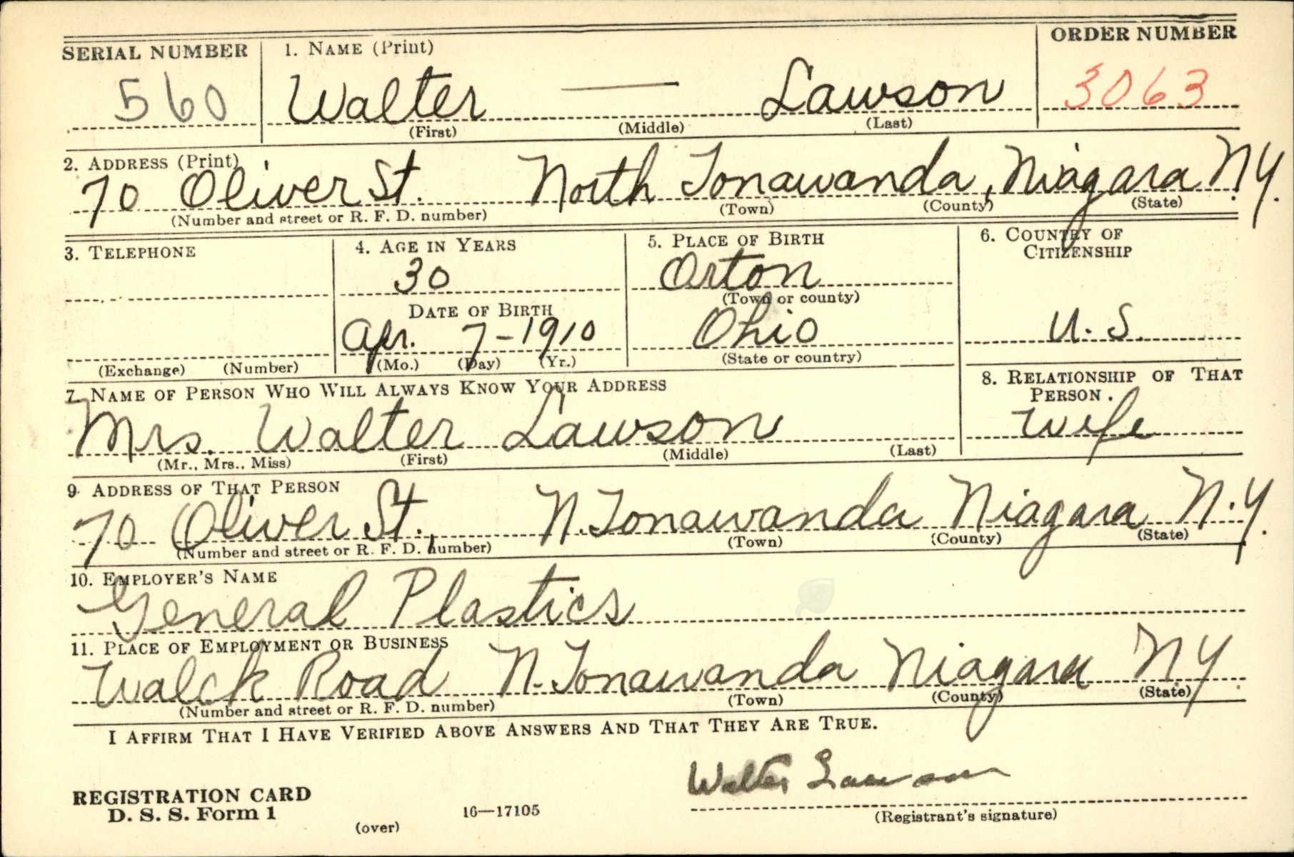 Walter Lawson was born on April 7, 1910 in Ironton, Lawrence, Ohio, USA. He and