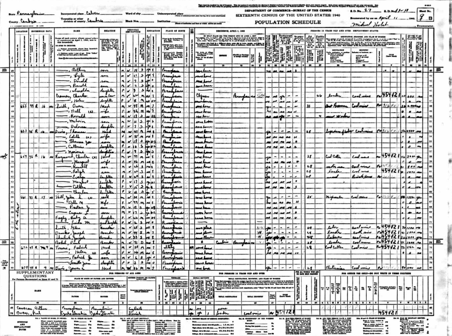 Raymond Family 1940 Federal Census Pennsylvania, Lines 58-65