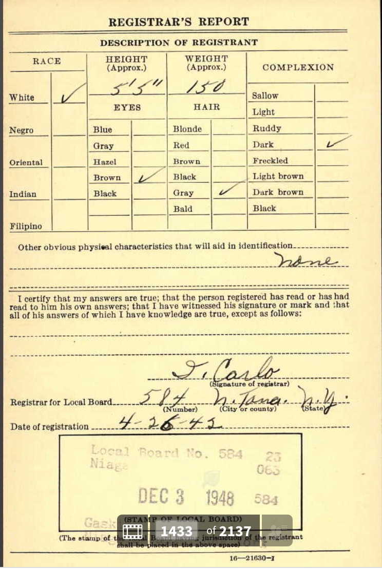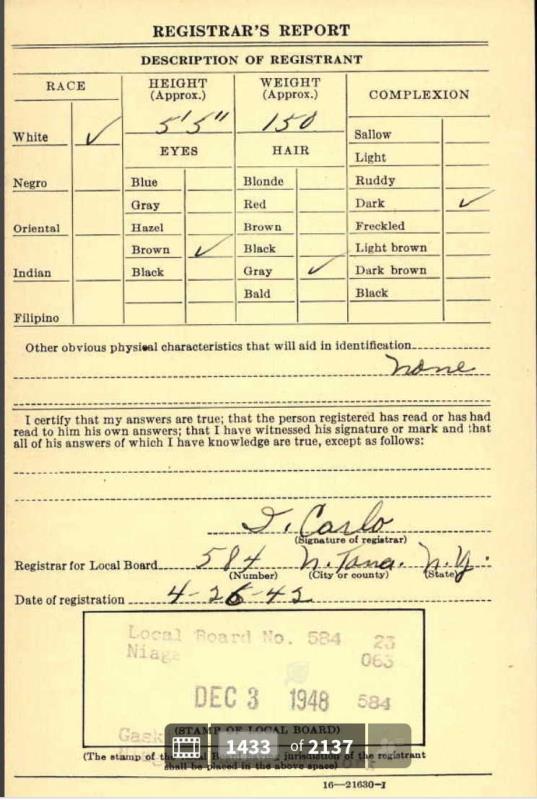 1942 World War II Registration Page 1