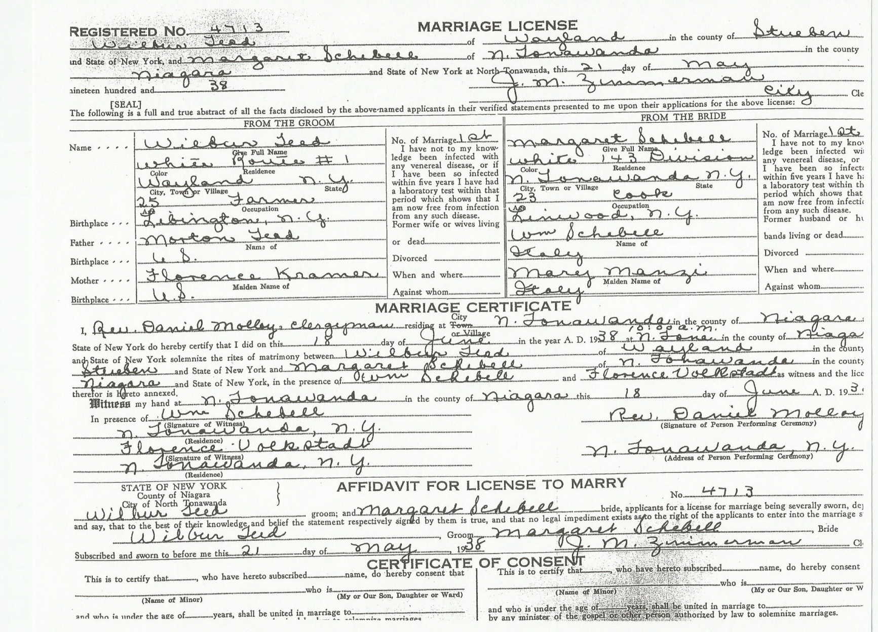 Margaret Ameilia Scibelli (Schebell) were married on June 18, 1938 in North Tonawanda, Niagara, New York, USA. He and