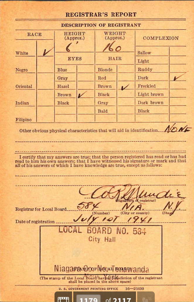 1941 World War II Registration Page 1