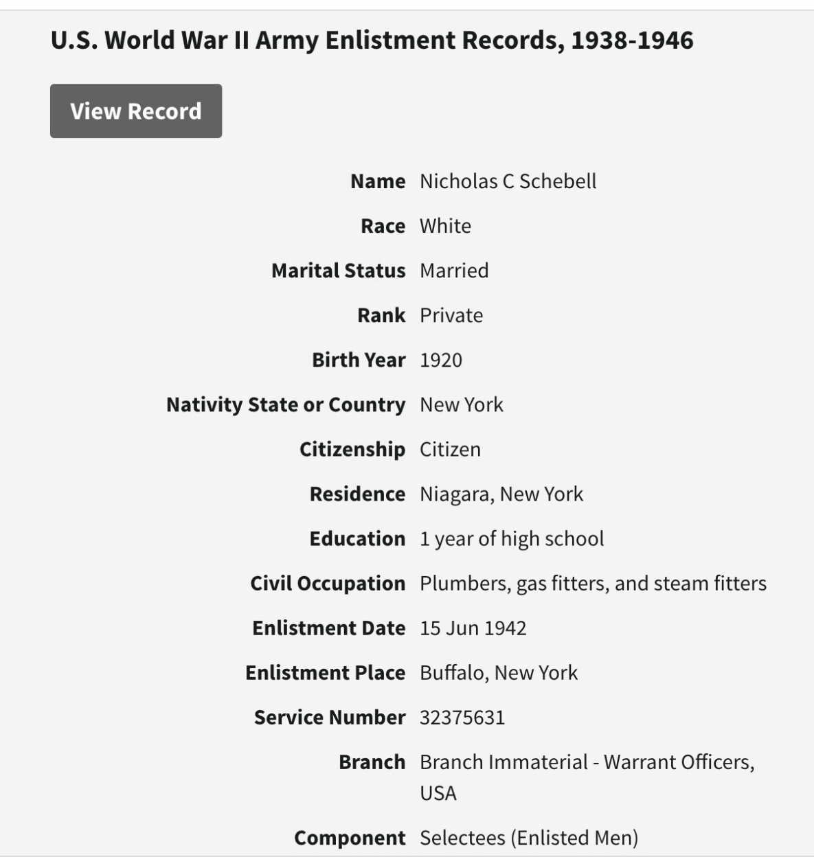 1942 Military Enlistment Record