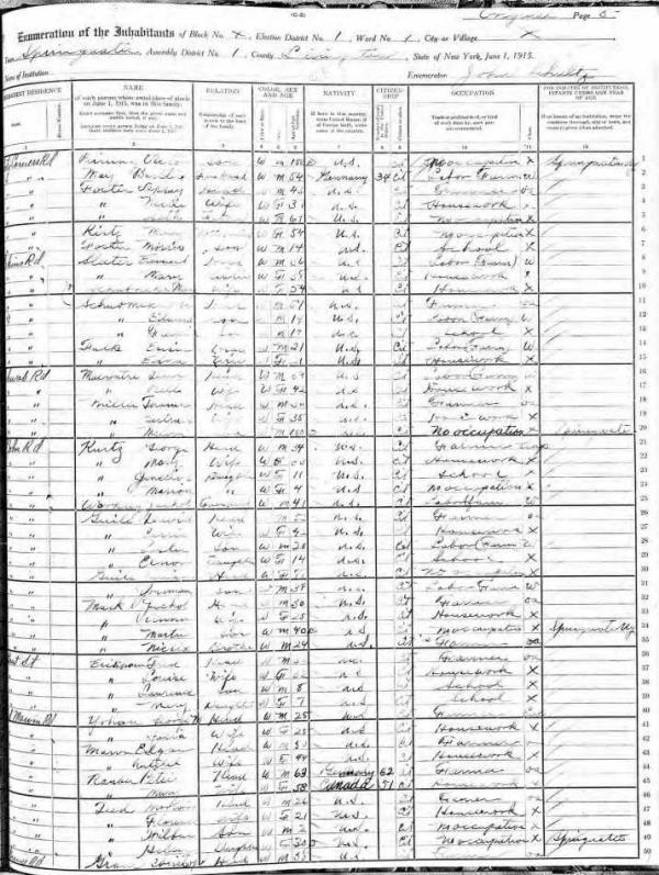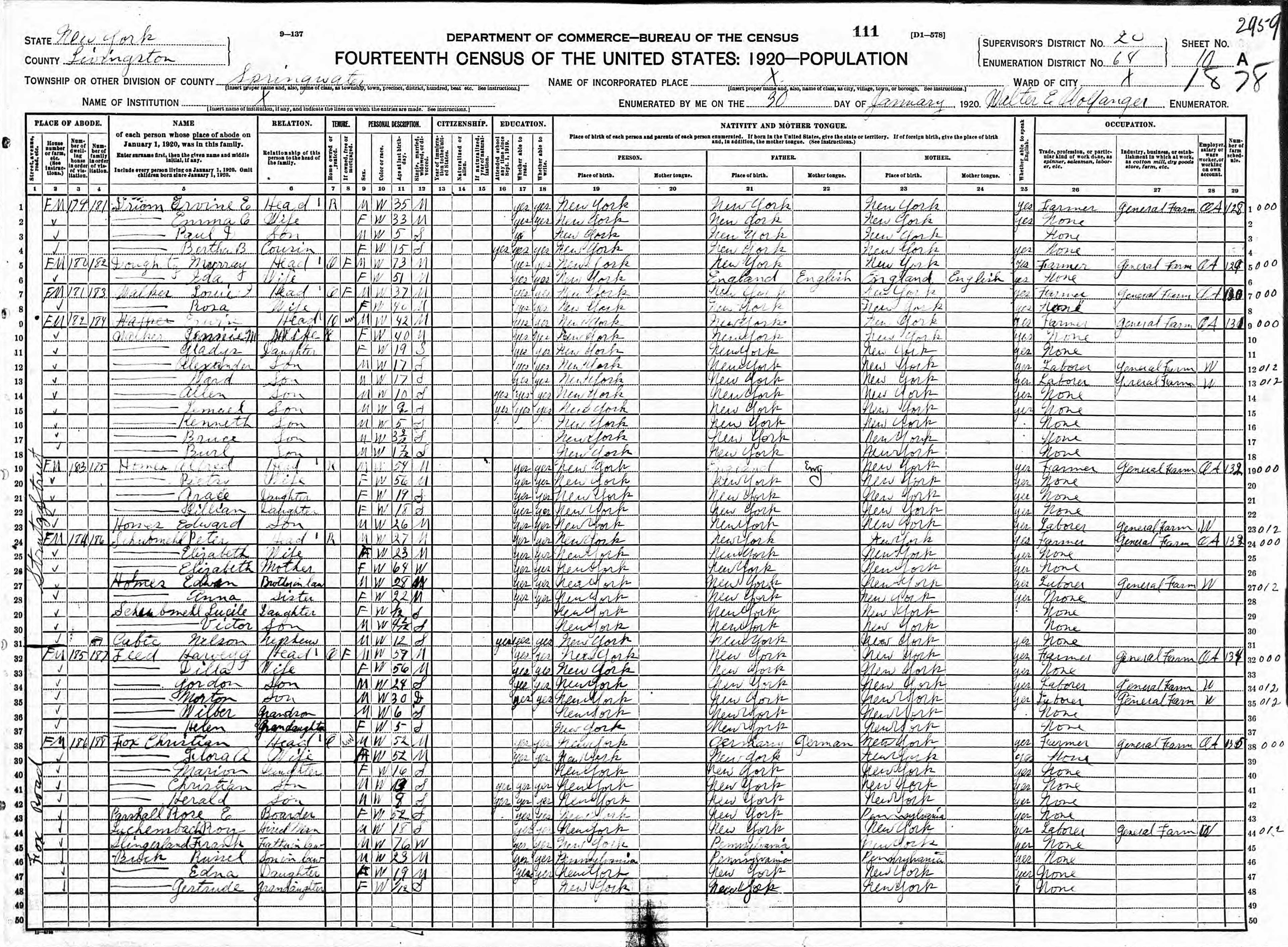 Teed Family 1920 Federal Census New York, Lines 32-37
