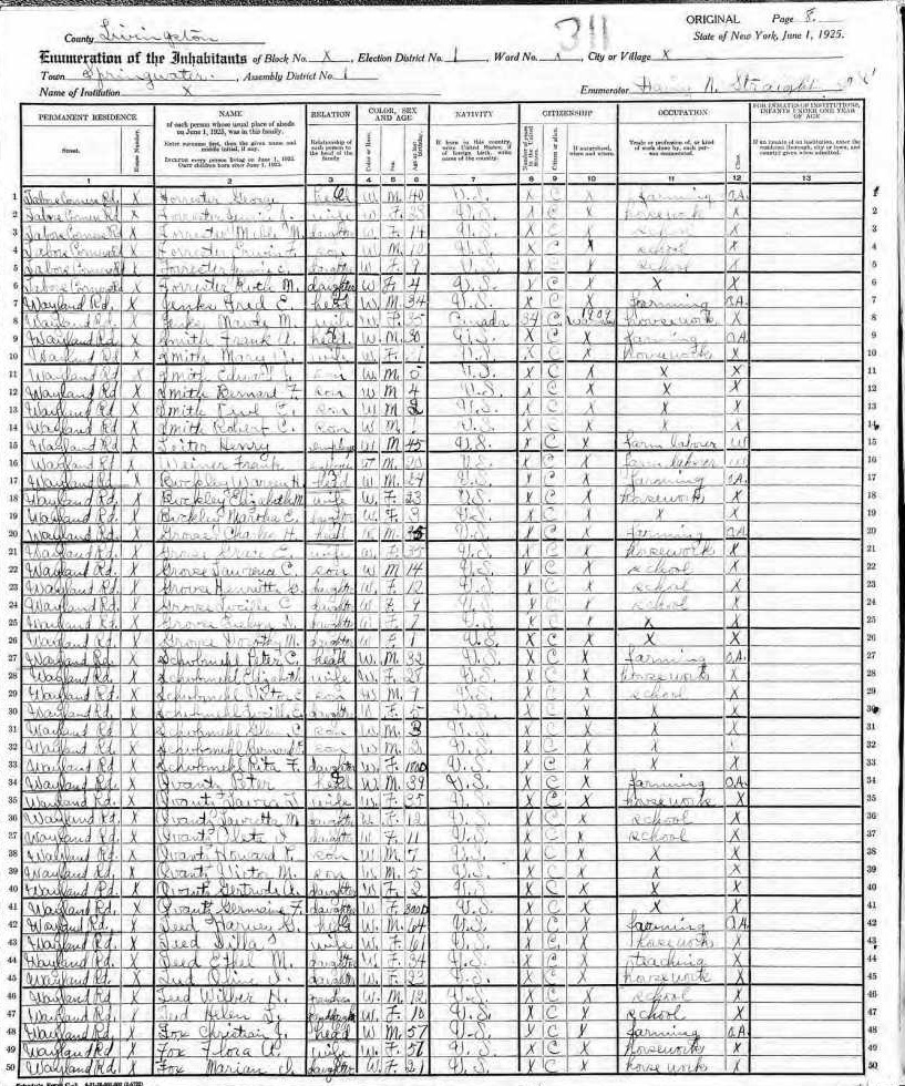 Teed Family 1925 State Census New York, Lines 42-47