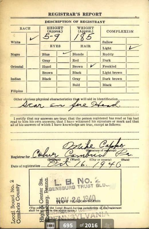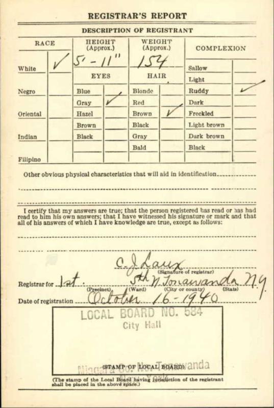 1940 World War II Registration Page 1