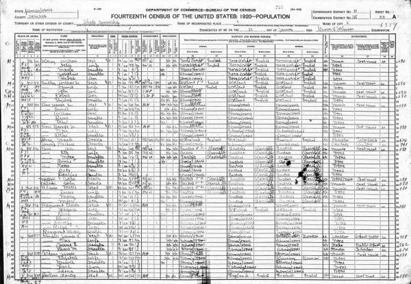 Raymond Family 1920 Federal Census Pennsylvania, Lines 34-30