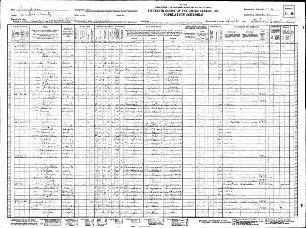 Raymond Family 1930 Federal Census Pennsylvania, Lines 73-82