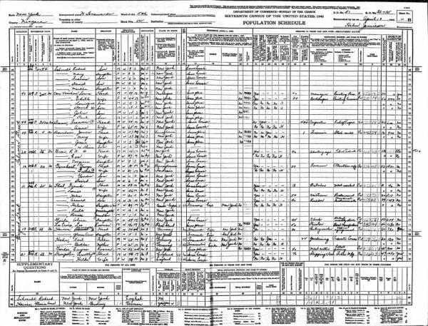 Karre Family 1940 Federal Census New York, Lines 33-37