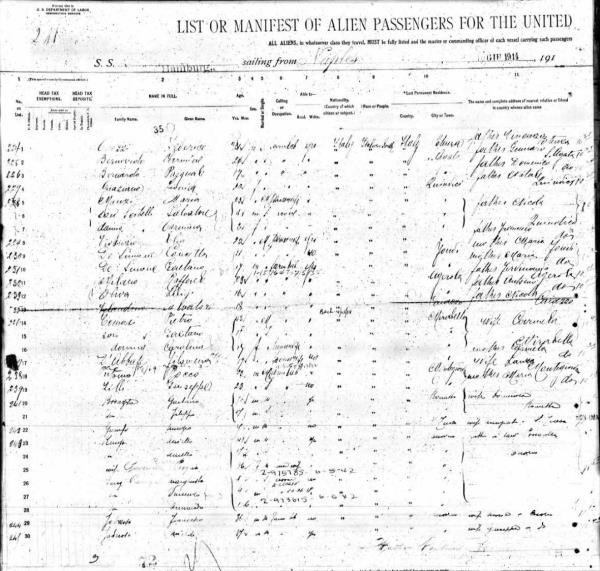 Scibelli Family 1914 Ship Departure Manifest, Lines 5-7