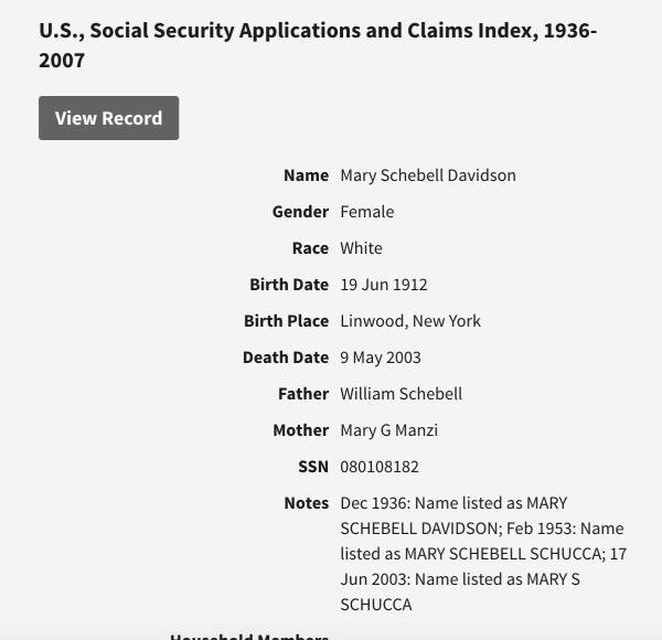 | Son | Salvatore "William" Scibelli (Schebell) Born: March 26, 1909, Died: July 1987 |